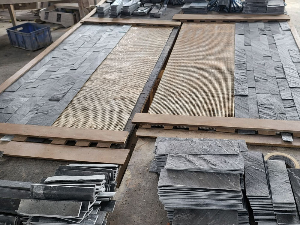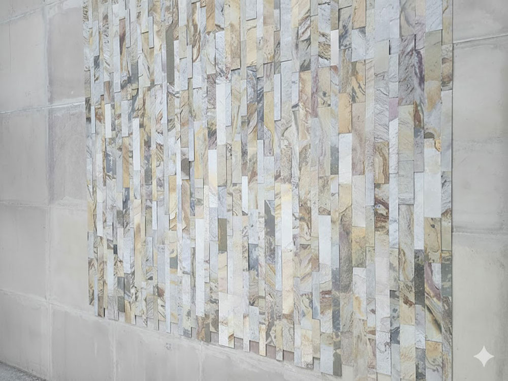 3D peel and stick full sheet lightweight panels are crafted from natural stone sheets. These precision-cut stone layers are mounted on a strong mesh backing, ensuring long-lasting durability with effortless handling.